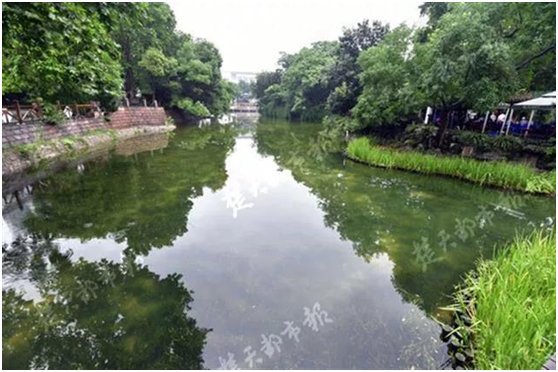 中山公园前后门各有一个人工湖,由一道水渠相连,整个公园水体总面积为5.92万平方米。改造前曾为劣五类水。